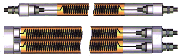 鍍金定向輻射加熱器:在單孔園管或雙孔孿管做半面鍍金涂層,經(jīng)高溫處理使加熱元件形成定向輻射,提高熱效率。